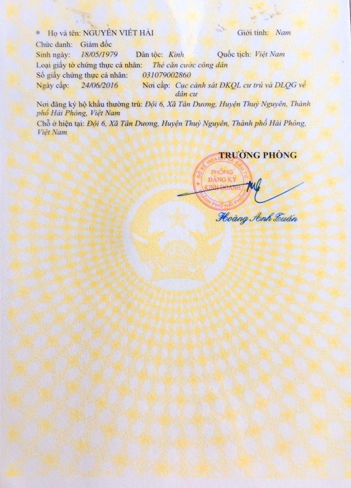 Địa chỉ trụ sở chính: Đội 6 (nhà ông Nguyễn Viết Hải), Xã Tân Dương, Huyện Thuỷ Nguyên, Thành phố Hải Phòng, Việt Nam